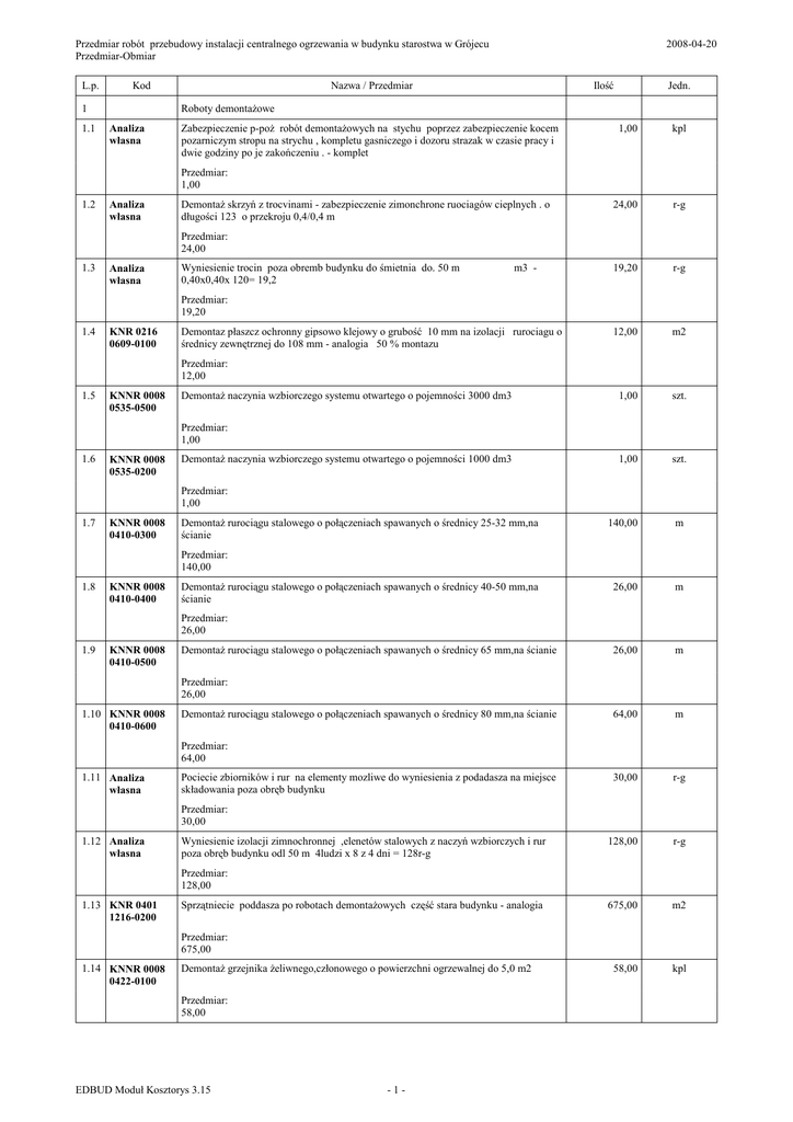 Przedmiar robót przebudowy instalacji centralnego ogrzewania w