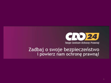 1 Pakiety Ochrony Prawnej 2 Pakiety Ochrony Prawnej cd: 3 Pakiet Premium PLUS Pakiet Premium PLUS to rozszerzony zakres Pakietu Premium, obejmuje: • Nie ograniczony dostęp do konsultacji prawnych przedstawionych w tabelach na stronach 5 i 6; • Usługę CDO Moto; 4 Pakiet Premium PLUS 5 6 Nowa usługa CDO MOTO 7 • Udzielanie informacji prawnych w zakresie zdarzeń opisanych powyżej • Udzielanie informacji teleadresowych dotyczących, kancelarii notarialnych, biura doradztwa podatkowego, sądów i prokuratur • Przesyłanie tekstów aktów prawnych w zakresie wymienionym powyżej 8 Prowadzenie spraw dla nieograniczonej liczby spraw; przez cały rok; już od pierwszego dnia 9 Oferujemy: szybki i wygodny dostęp do prawników; uniknięcie działania „na własną rękę”; wsparcie i bezpłatne konsultacje; niezwłoczne podjęcie interwencji przez prawnika; reprezentację w sądach; 10 Każdy pełnoletni posiadacz Pakietu Ochrony Prawnej otrzymuje własną Kartę CDO24 11 Przykładowe sprawy: Samochód Pana Marka uległ uszkodzeniu wskutek przewrócenia się drzewa rosnącego na drodze należącej do miasta. Działania CDO24 doprowadziły do pełnego naprawienia szkody wyrządzonej w pojeździe i naprawę pojazdu w autoryzowanym warsztacie. Pan Paweł podczas zabiegu w szpitalu został zarażony wirusem żółtaczki. CDO24 uzyskał dla niego zadośćuczynienia w wysokości 8 000 zł Pani Maria w wyniku gwałtownego hamowania autobusu doznała złamania ręki. CDO24 wystąpiło w jej imieniu do ubezpieczyciela przedsiębiorstwa komunikacyjnego i uzyskało za ból, krzywdę i cierpienie zadośćuczynienie w wysokości 18 000 zł 12 Mając kartę CDO24 możesz spać spokojnie! 13