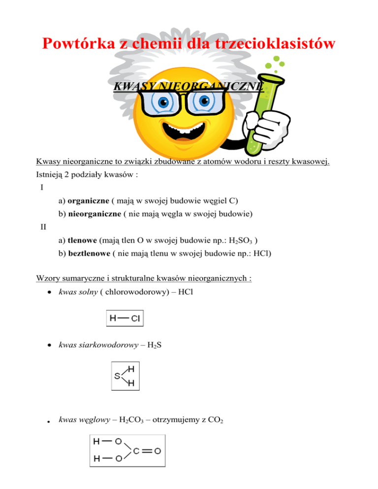 Powtórka z chemii dla trzecioklasistów KWASY NIEORGANICZNE