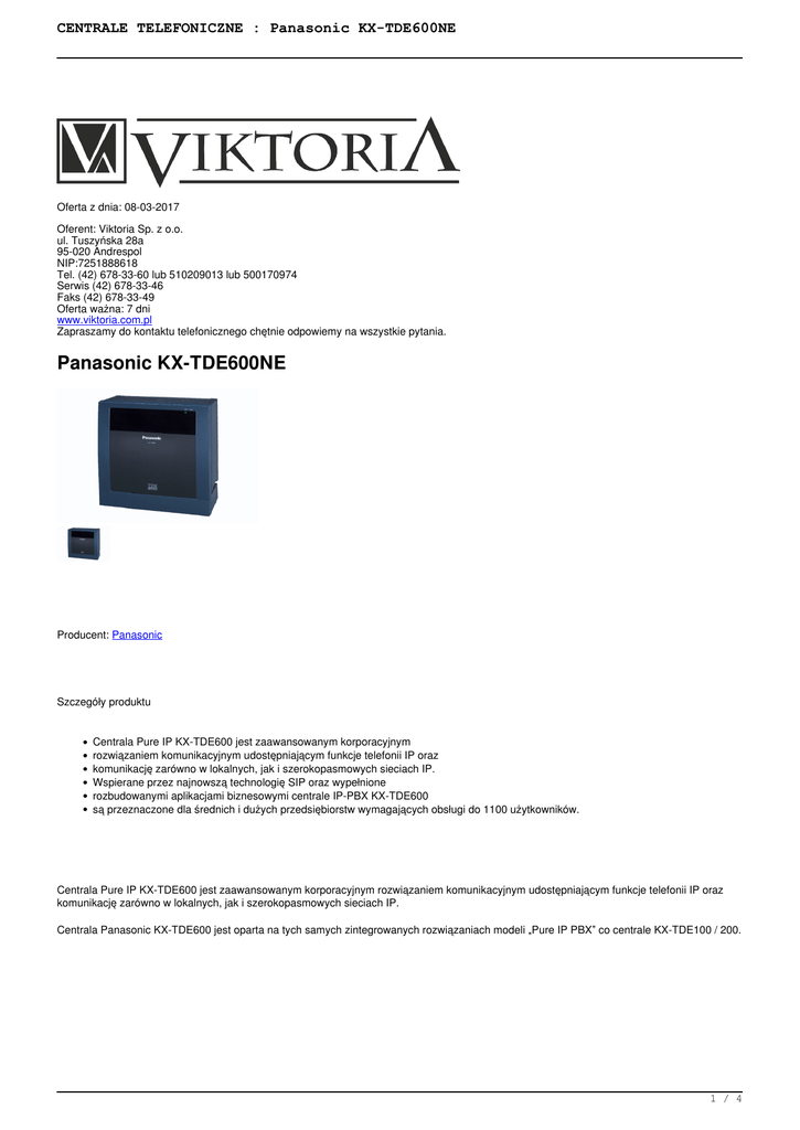 CENTRALE TELEFONICZNE : Panasonic KX-TDE600NE