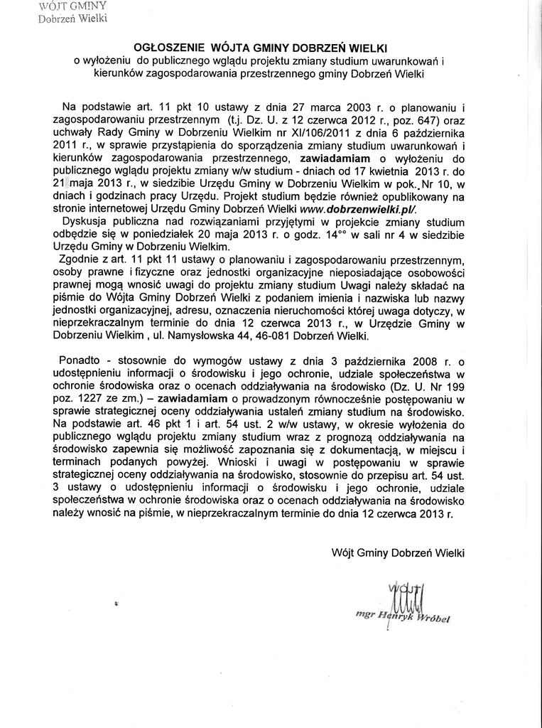 oGŁoszENlE WoJTA GMINYDoBRzEŃ WlELKl