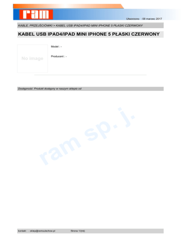 Utworzono : 08 marzec 2017 KABLE, PRZEJŚCIÓWKI > KABEL USB IPAD4/IPAD MINI IPHONE 5 PŁASKI CZERWONY KABEL USB IPAD4/IPAD MINI IPHONE 5 PŁASKI CZERWONY Model : - No image Producent : - Dostępność: Produkt dostępny w naszym sklepie od . j . m a r kontakt : - [email protected] Strona 1/{nb} p s