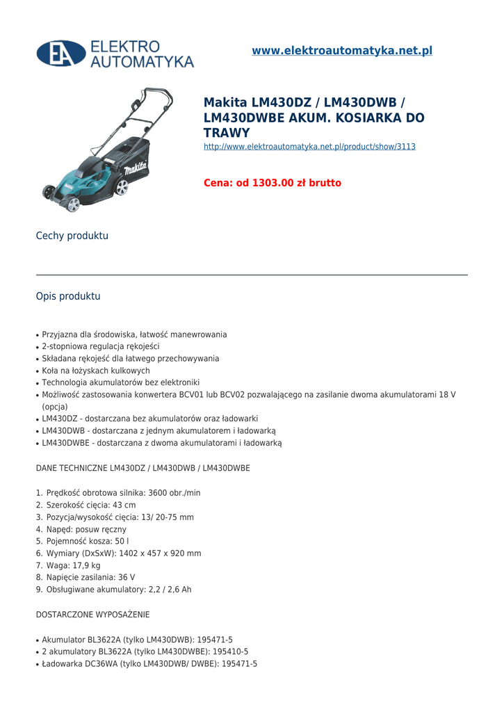 Makita LM430DZ / LM430DWB / LM430DWBE AKUM. KOSIARKA