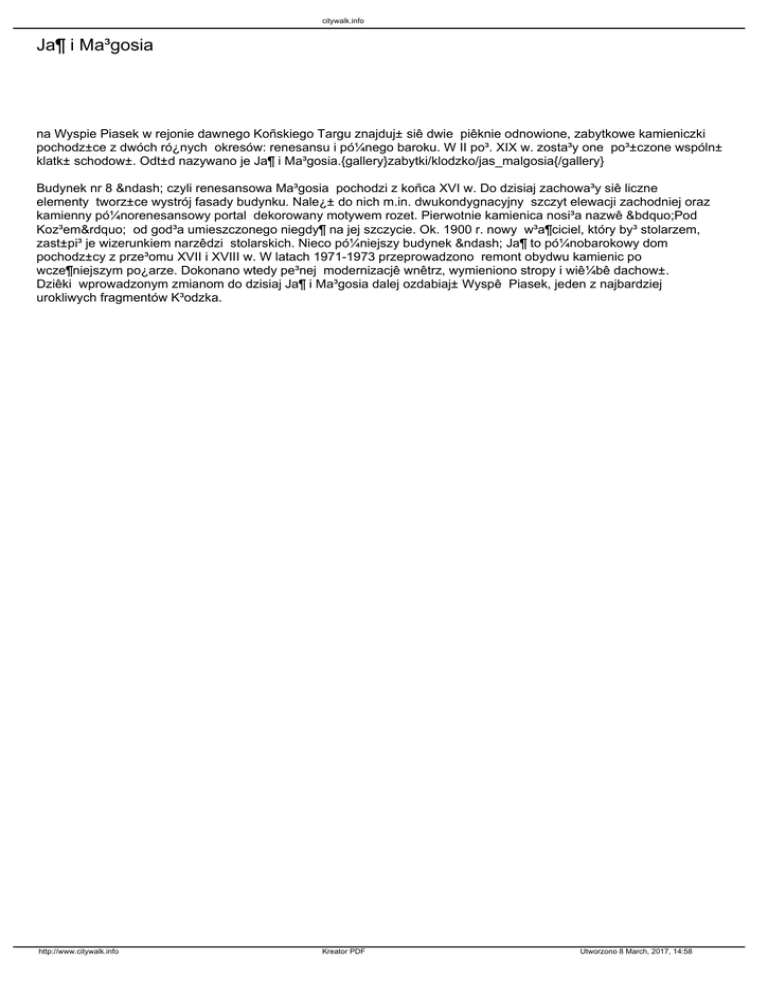 zast±pi³ je wizerunkiem narzêdzi stolarskich. Nieco pó¼niejszy budynek – Ja¶ to pó¼nobarokowy dom