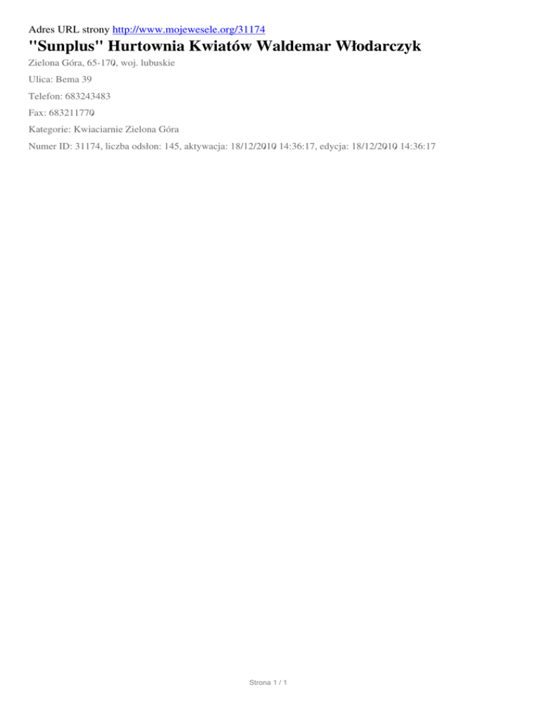 "Sunplus" Hurtownia Kwiatow Waldemar Wlodarczyk, Zielona Gora