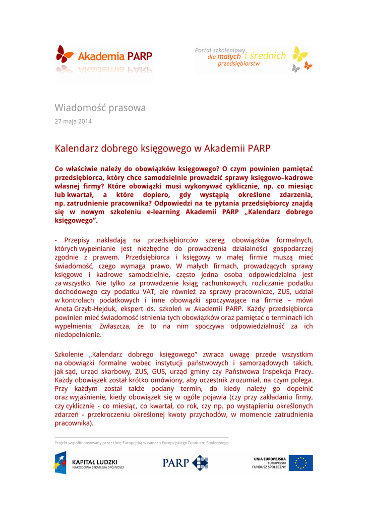 Kalendarz dobrego księgowego w Akademii PARP