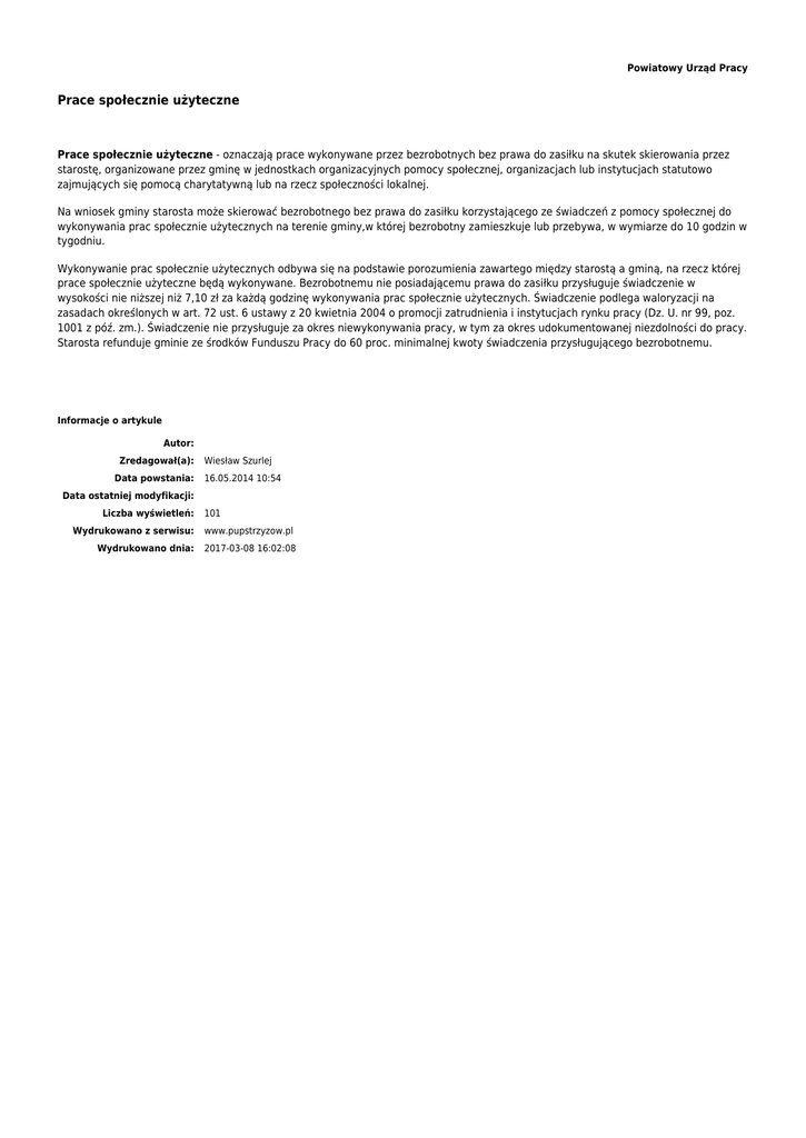Prace społecznie użyteczne - Powiatowy Urząd Pracy w