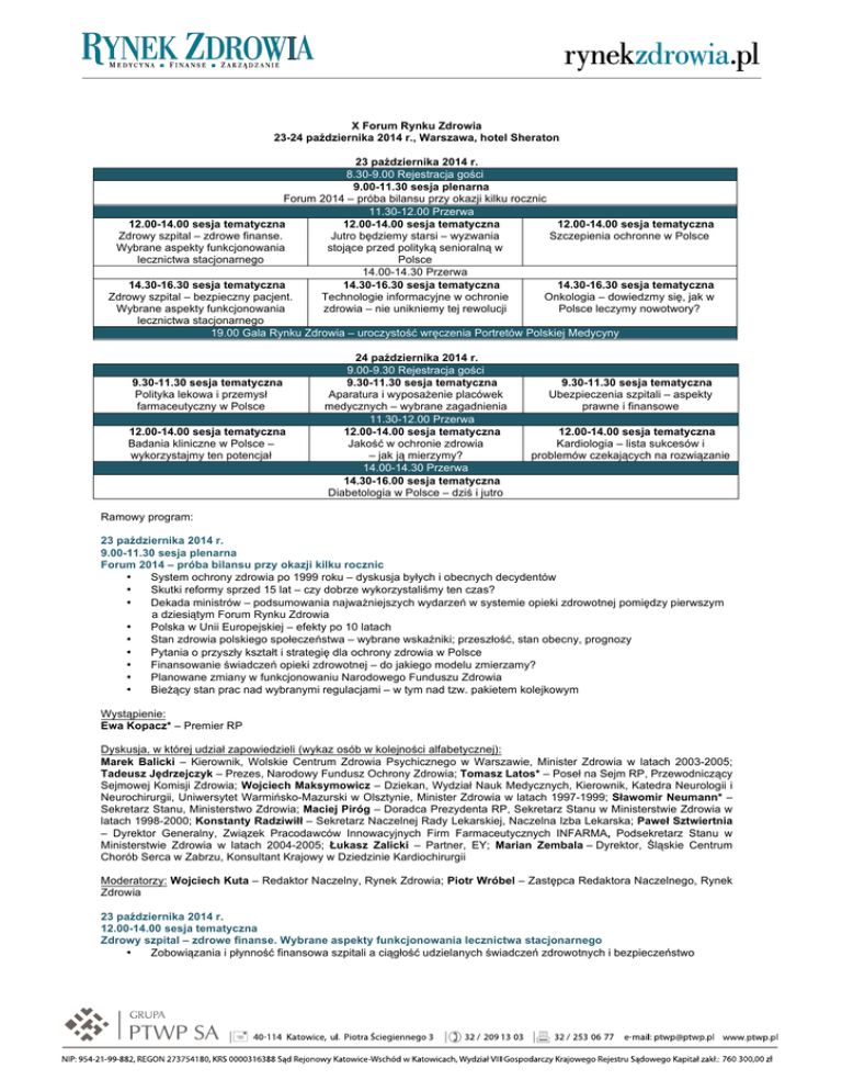 X Forum Rynku Zdrowia 23-24 października 2014 r., Warszawa