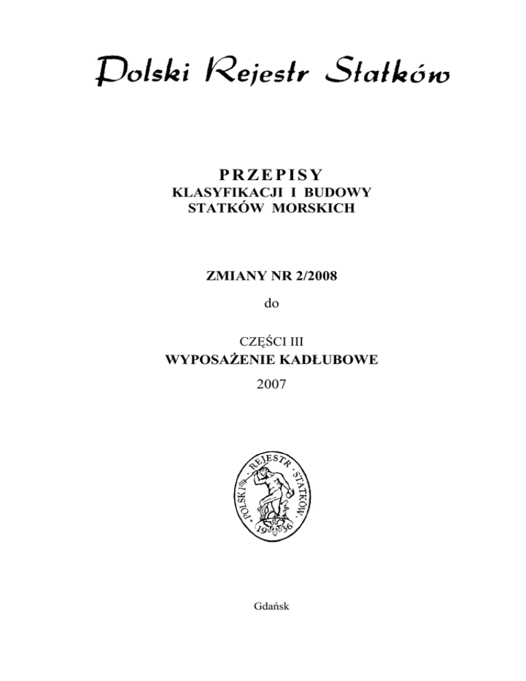 Zmiany Nr 2/2008 do Części III - Wyposażenie kadłubowe