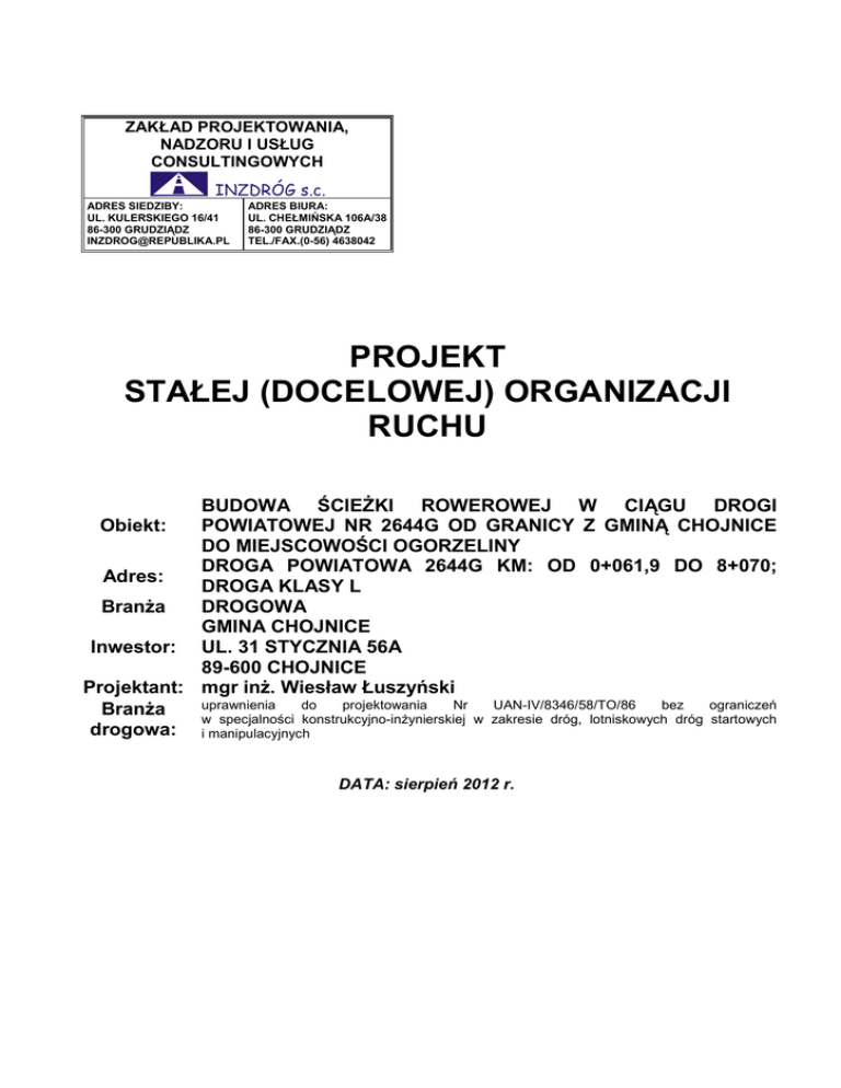 PROJEKT STAŁEJ (DOCELOWEJ) ORGANIZACJI RUCHU
