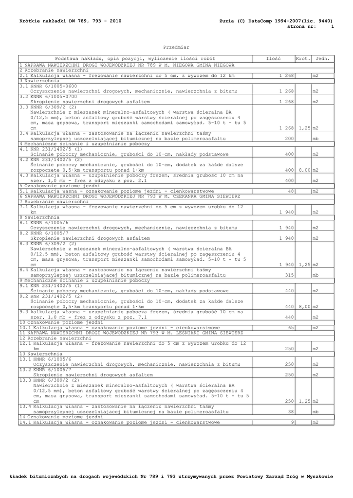 Wydruk kosztorysu - Powiatowy Zarząd Dróg w Myszkowie