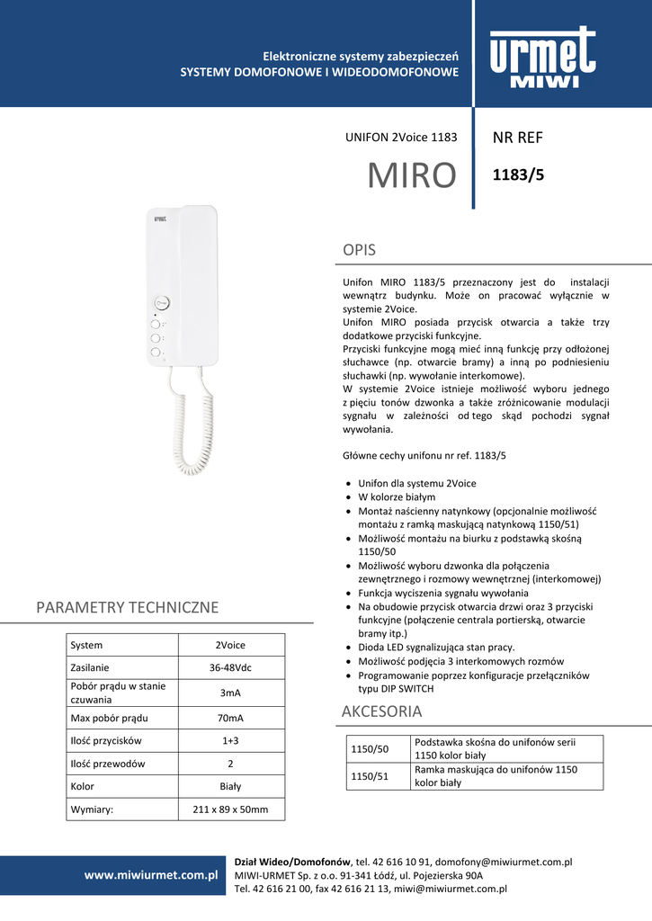 NR REF MIRO 1183/5 OPIS PARAMETRY TECHNICZNE AKCESORIA