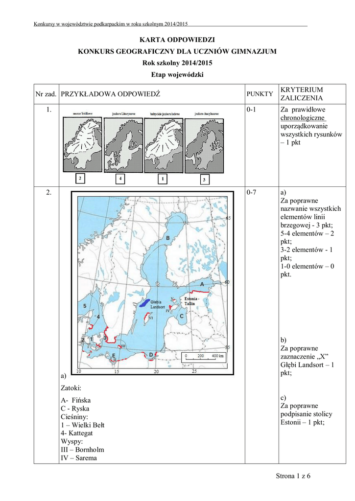 Strona 1 z 6 KARTA ODPOWIEDZI KONKURS GEOGRAFICZNY