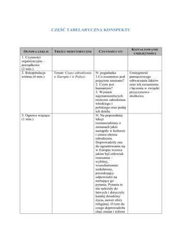 konspekt - część tabelaryczna (tok lekcji)