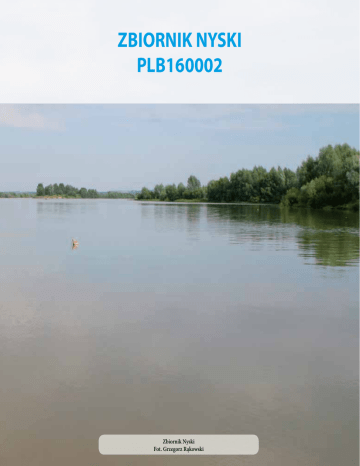 ZBIORNIK NYSKI PLB160002 Zbiornik Nyski Fot. Grzegorz Rąkowski Biegus zmienny Fot. Grzegorz i Tomasz Kłosowscy Obszar obejmuje położony między miastami Otmuchów i Nysa zaporowy Zbiornik Nyski na Nysie Kłodzkiej, o maksymalnej powierzchni 2 077 ha, oraz niewielkie fragmenty terenów przyległych. Zbiornik leży w bezleśnym, pagórkowatym terenie, zajętym w większości przez intensywne uprawy rolne. Północny brzeg Zbiornika Nyskiego stanowi naturalna skarpa doliny Nysy Kłodzkiej, od wschodu zaś i od południa otaczają go obwałowania. Poziom wody w zbiorniku ulega silnym wahaniom. W jego zachodniej części znajduje się kilka niewielkich wysp powstałych w wyniku prowadzonej tu eksploatacji żwiru. Wzdłuż części brzegów występują pasy zarośli. Roślinność wodna i szuwarowa jest słabo rozwinięta. Obszar znajduje się w obrębie Otmuchowsko-Nyskiego Obszaru Chronionego Krajobrazu. Zachowaniu i utrzymaniu siedlisk cennych gatunków ptaków na Zbiorniku Nyskim sprzyja obecność niewielkich żwirowych wysepek oraz ekstensywna gospodarka łąkarska prowadzona na użytkach zielonych położonych w sąsiedztwie zbiornika. Do najważniejszych zagrożeń dla awifauny i jej siedlisk na omawianym obszarze należą: gwałtowne zmiany poziomu wody w zbiorniku, prowadzona tu eksploatacja żwiru, rozwój turystyki i rekreacji oraz penetracja siedlisk ptaków przez ludzi i zwierzęta domowe. Zbiornik Nyski jest jedną z ważniejszych ostoi lęgowych skrajnie nielicznej w kraju mewy czarnogłowej Larus melanocephalus (3–9 par lęgowych, ponad 5% ogólnokrajowej populacji lęgowej), a także śmieszki Larus ridibundus (3 613– 4 410 par lęgowych, blisko 5% ogólnokrajowej populacji lęgowej) i rybitwy rzecznej Sterna hirundo (do 186 par lęgowych, ok. 4% ogólnokrajowej populacji lęgowej). Podczas przelotów na Zbiorniku Nyskim gromadzą się stada ptaków wodno-błotnych, których liczebność przekracza 30 000 osobników. Największe zgrupowania tworzą w tym okresie: gęś zbożowa Anser fabalis (6 000–29 500 osobników) i krzyżówka Anas platyrhynchos (do 23 000 osobników), a także siewkowce, wśród których zwraca uwagę znaczna liczebność migrującej populacji biegusa zmiennego Calidris alpina (410–650 osobników). Powierzchnia: 2127,80 ha Rok zatwierdzenia: 2008 Region geograficzny: Nizina Śląska Mezoregion: Dolina Nysy Kłodzkiej Położenie administracyjne: województwo opolskie, powiat nyski Sprawujący nadzór nad obszarem: Regionalna Dyrekcja Ochrony Środowiska w Opolu ul. Obrońców Stalingradu 66 45-512 Opole tel: 77 452 62 30, fax: 77 452 62 31 e-mail: [email protected] www.opole.rdos.gov.pl Dane Bazy Danych Ogólnogeograficznych, będące treścią niniejszego opracowania, są materiałem państwowego zasobu geodezyjnego i kartograficznego, prowadzonego przez Głównego Geodetę Kraju na podstawie przepisów ustawy Prawo geodezyjne i kartograficzne. Osoby korzystające z tych materiałów nie mają prawa do ich zwielokrotniania, sprzedawania, udostępniania lub w inny sposób wprowadzania do obrotu lub rozpowszechniania ich treści w całości bądź we fragmentach, w szczególności do ich przesyłania lub udostępniania w systemach i sieciach komputerowych lub jakichkolwiek innych systemach teleinformatycznych.