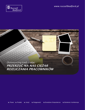www.russellbedford.pl Russell Bedford Outsourcing kadr i płac PRZERZUĆ NA NAS CIĘŻAR ROZLICZANIA PRACOWNIKÓW Prawo Podatki Audyt Księgowość Doradztwo Gospodarcze Szkolenia i konferencje Outsourcing określonych procesów biznesowych jest nowoczesnym narzędziem wspomagającym zarządzanie przedsiębiorstwem - polega na wykorzystywaniu zasobów zewnętrznych, poprzez przekazanie wyspecjalizowanym jednostkom istotnych procesów niezbędnych do funkcjonowania własnego przedsiębiorstwa. Outsourcing pozwala na przekazanie zewnętrznej firmie tych funkcji, które nie są kluczowe z punktu widzenia generowania przychodów i rozwoju biznesu oraz równoczesną koncentrację na tych obszarach, które są strategiczne z perspektywy sukcesu rynkowego. Wychodząc naprzeciw Państwa oczekiwaniom, powołaliśmy zespół wykwalifikowanych specjalistów, który szybko i sprawnie poprowadzi pełną obsługę spraw związanych z wynagrodzeniem pracowników, co w rezultacie przełoży się na zwiększenie efektywności w zakresie zarządzania kadrami. Gwarantujemy najwyższy standard prac, zgodność z wymogami obowiązujących przepisów oraz najlepszymi praktykami rynkowymi. W ramach obsługi kadrowej oferujemy: • Prowadzenie teczek osobowych pracowników; Kontakt • Administrowanie aktami osobowymi; Wojciech Ośka • Prowadzenie kartoteki urlopowej pracowników; Partner Zarządzający M: +48 533 091 020 E: [email protected] • Ustalanie wymiarów oraz limitów urlopów; • Prowadzenie ewidencji czasu pracy oraz rozliczanie godzin nadliczbowych; • Wystawianie świadectw pracy; • Kierowanie pracowników na wstępne, okresowe i kontrolne badania lekarskie; • Zgłaszanie / aktualizowanie w ZUS danych personalnych pracowników; • Przygotowywanie deklaracji do PERON; • Rejestrowanie i wyrejestrowywanie pracodawców i pracowników w ZUS oraz PIP; • Bieżący monitorowanie upływu ważnych terminów (badań okresowych, szkoleń BHP); • Sporządzanie projektów umów o pracę, aneksów do umów, wypowiedzeń umów oraz innych dokumentów kadrowych związanych z przebiegiem stosunku pracy; • Asysta w trakcie kontroli urzędów i inspekcji innych organów państwowych; • Doradztwo z zakresu prawa pracy, prawa ubezpieczeń; • Archiwizowanie dokumentacji kadrowo-płacowej zgodnie z przepisami obowiązującego prawa. Kontakt Anna Kopyść Of Counsel M: +48 507 133 565 E: [email protected] Business Consultants with a global perspective 2 www.russellbedford.pl W ramach realizacji usługi płacowej oferujemy: • Naliczanie wynagrodzeń i sporządzanie list płac; • Naliczanie wynagrodzeń za okres choroby oraz zasiłków; • Budżetowanie wynagrodzeń; • Kalkulację zobowiązań publicznoprawnych związanych z wynagrodzeniami oraz przygotowywanie deklaracji do ZUS i PERON; • Realizowanie przelewów wynagrodzeń pracownikom oraz zobowiązań do US, ZUS i PERON; • Sporządzanie sprawozdań i raportów GUS; • Sporządzanie zaświadczeń dla pracowników o naliczonym wynagrodzeniu i dokonanych potrąceniach; • Opracowywanie i aktualizację kart wynagrodzeń pracowniczych oraz kart zasiłkowych; • Sporządzanie raportów ZUS RMUA; • Sporządzanie pasków płacowych; • Przygotowywanie zaświadczeń zatrudnieniu oraz osiągniętych dochodach; • Coroczne sporządzanie PIT 11, PIT 40 PIT 4R,PIT 8AR, ZUS IWA; • Analiza zmian w przepisach i ich wpływu na sytuację Spółki; • Sporządzanie wewnętrznej dokumentacji kadrowo-płacowej, takiej jak: regulaminy pracy, regulaminy wynagradzania, zasady korzystania z samochodów służbowych; • Przeprowadzanie przeglądów dokumentacji kadrowo -płacowej z punktu widzenia poprawności naliczania wynagrodzeń i zgodności jej prowadzenia z obowiązującymi przepisami; • Współpraca z działem księgowym (przygotowywanie danych finansowych i raportów; współpraca przy ewidencjonowaniu i uzgadnianiu korekt wynagrodzeń); • Doradztwo i reprezentacja Klientów przed urzędami i instytucjami; • Opracowywanie i rozliczanie umów (w tym: umów o pracę, umów o dzieło, umów zlecenie, kontraktów menedżerskich, innych); • Archiwizowanie dokumentacji kadrowo-płacowej zgodnie z przepisami obowiązującego prawa. Prawo Podatki Audyt Księgowość Doradztwo Szkolenia 3 O nas Grupa doradcza Russell Bedford jest członkiem międzynarodowej sieci niezależnych firm doradczych Russell Bedford International, zrzeszających prawników, audytorów, doradców podatkowych, księgowych, finansistów oraz doradców biznesowych. Russell Bedford doradza klientom w ponad 100 krajach na całym świecie. Grupa posiada ponad 300 biur i zatrudnia ok. 7.500 profesjonalnych doradców. Świadczymy usługi z zakresu: • obsługa księgowa • doradztwo podatkowe • obsługa prawna • audyt finansowy • przygotowanie dokumentacji cen transferowych • wycena przedsiębiorstw oraz prognozy finansowe W Polsce powołaliśmy kancelarię prawną, kancelarię doradztwa podatkowego, kancelarię biegłych rewidentów, biuro rachunkowe oraz biuro analiz finansowych i gospodarczych. • doradztwo związane z wprowadzeniem spółki na Giełdę oraz Rynek NewConnect Działamy w Polsce poprzez nasze Biura w: Warszawie, Katowicach, Poznaniu i Gdyni. • doradztwo związane z procesami fuzji i przejęć (M&A) Doradzamy kluczowym spółkom w prowadzeniu działalności na rynku polskim i europejskim w różnych dziedzinach działalności. Nasz kapitał doświadczeń może być przydatny w Twoim biznesie. • doradztwo związane z pozyskiwaniem funduszy unijnych Russell Bedford w Polsce zajmuje się doradztwem dla wiodących firm polskich i zagranicznych oraz dla instytucji finansowych. • zwalczanie nadużyć gospodarczych • usługi poświadczające • szkolenia otwarte i zamknięte • konferencje i kongresy Naszym celem jest poprawa jakości świadczonych usług i dążenie do spełnienia oczekiwań naszych klientów. Swoje usługi oferujemy wszystkim p