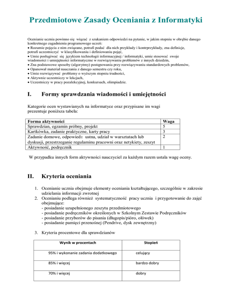 Przedmiotowe Zasady Oceniania z Informatyki