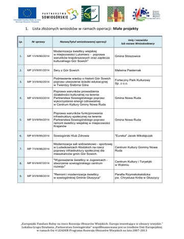 1. Lista złożonych wniosków w ramach operacji: Małe projekty