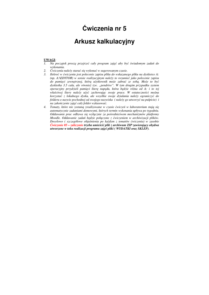 Ćwiczenia nr 5 Arkusz kalkulacyjny