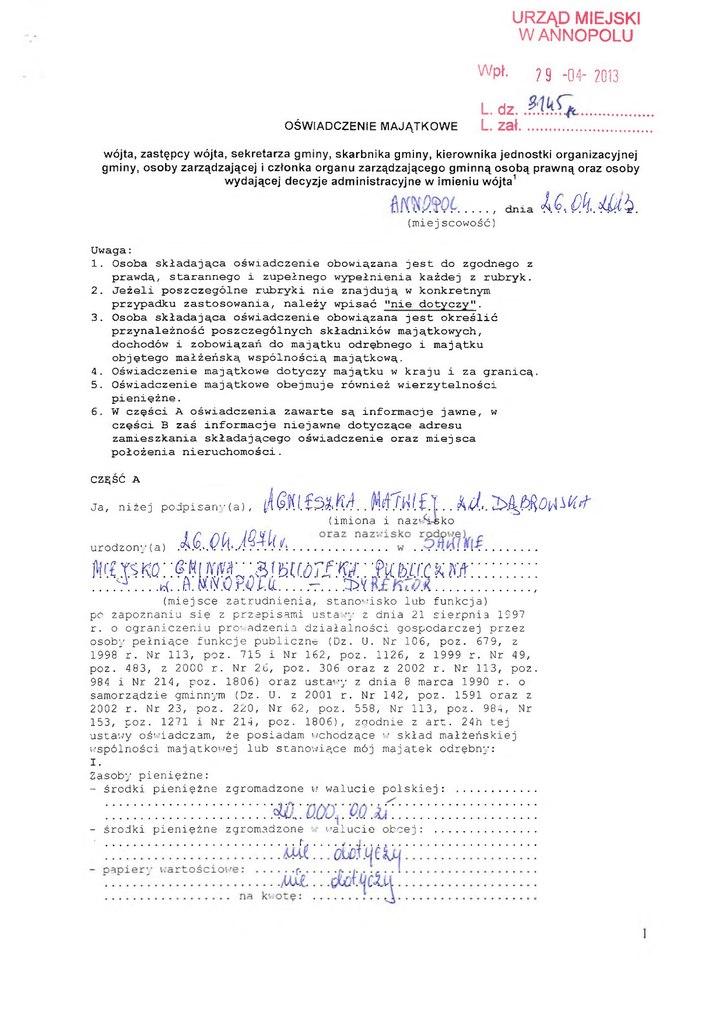 Oświadczenie za rok 2013 - Urząd Miejski w Annopolu
