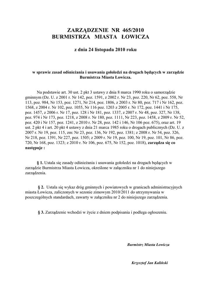 Zarządzenie nr 465/2010 Burmistrza Miasta Łowicza z dnia 24
