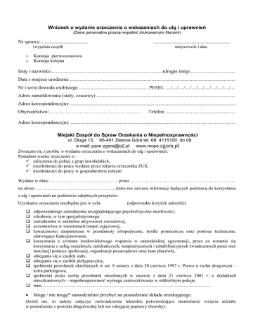 PDF Wniosek o wydanie orzeczenia (do ulg i uprawnień)