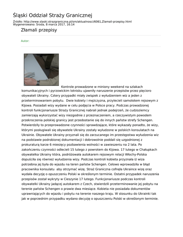 Generuj PDF z tej stronie - Śląski Oddział Straży Granicznej