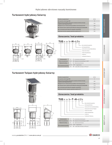 Hybrydowe obrotowe nasady kominowe Turbowent hybrydowy Solarny Średnica nasady [mm] NASADY KOMINOWE Ø150 Moc panelu solarnego [W] 10 Maksymalna prędkość obrotowa nasady zasilanej energią z panelu solarnego [obr/min] 360 Wydajność przy maksymalnej prędkości obrotowej [m3/h] 230 Moc dostarczana z panelu potrzebna do załączenia silnika [W] 1,13 Moc minimalna potrzebna do napędu nasady [W] 0,7 Możliwość obrotu nasady z panelem wokół osi [o] 360 Oznaczenia / kod produktu 280 280280 280 TUS x a b-H-d / 330 330 340340 STEROWANIE kąt ustawienia panelu wersja podstawy 510 35° materiał turbiny średnica turbowent Solarny Ø150,4Ø150,4 4xØ4x 9,5 Ø9,5 208 208208 4xØ9,54xØ9,5 208 250x250 250x250 250x250 250x250 Zastosowanie W W - przewody wentylacyjne Materiał podstawy CH CH - blacha chromoniklowa 1.4301 Materiał turbiny AL AL - blacha aluminiowa Kąt ustawienia panelu 0-15 0-15º - regulowany 35 35º - stały (dla montażu w Polsce) SYSTEMY DGP Ø150,4 Ø150,4 84 84 84 92 92 92 92 materiał podstawy 84 35° 430 430 510 oznaczenie wersji hybrydowej Turbowent Tulipan hybrydowy Solarny Nazwa Nazwa rys. rys. Podziałka Podziałka Turbowent Turbowentsolarny solarny DARCO DARCO Sp. Sp. z o.o. z o.o. Zastępuje Zastępuje rys.z dnia rys.z dnia TU-20 TU-20 3 3/3 /3 35st35st Turbowent Turbowent solarny solarny Nazwa rys. Nazwa rys. DARCO DARCO Sp. zSp. o.o. z o.o. 39-200 39-200 Dębica,Dębica, ul. Metalowców ul. Metalowców 43 43 www.darco.com.pl www.darco.com.pl Nr rys. Nr rys. TU-22 TU-22 Ark./Il ark. Ark./Il ark. Średnica 1 /11 /1 nasady [mm] Ø150 Moc panelu solarnego [W] 240 1 : 18 : 8 5 Maksymalna prędkość obrotowa nasady zasilanej energią z panelu solarnego [obr/min] 600 Wydajność przy maksymalnej prędkości obrotowej [m3/h] 246 Moc dostarczana z panelu potrzebna do załączenia silnika [W] 1,13 Moc minimalna potrzebna do napędu nasady [W] 0,7 Możliwość obrotu nasady z panelem wokół osi [o] 360 Oznaczenia / kod produktu TUS x a b-T-H-d / kąt ustawienia panelu 1:5 wersja podstawy 245 240 240x240 oznaczenie wersji hybrydowej 240 oznaczenie wersji Tulipan materiał turbiny materiał podstawy 35° średnica 158 158 Zastosowanie W W - przewody wentylacyjne Materiał podstawy CH CH - blacha chromoniklowa 1.4301 Materiał turbiny AL AL - blacha aluminiowa Kąt ustawienia panelu Ø144 144 187 187 Konstruował Ł.Romaniec P.Lipa Sprawdził Zatwierdził J.Darłak 1:5 Podziałka Nazwa rys. Zastępuje rys.z dnia Tulipan solarny 35st katalog produktów 2016 | www.darco.com.pl Konstruował Ł.Romaniec P.Lipa Sprawdził Zatwierdził J.Darłak Podziałka Nazwa rys. 04-02-2015 Zastępuje rys.z dnia Nr rys. DARCO Sp. z o.o. 39-206 Pustków Osiedle 48 tel.(014) 680 90 90 (..91) Ark./Il ark. TU 21 Tulipan 1 /1 solarny Nr rys. WENTYLACJA 610 turbowent Solarny 244 558 244 158 157 Podziałka Podziałka Zastępuje Zastępuje rys.zrys.z dniadnia Ł.Romaniec Ł.Romaniec Konstruował Konstruował 39-206 39-206 Pustków Pustków Osiedle Osiedle 48 48 tel.(014) 680 680 90 90 90(..91) 90 (..91) P.LipaP.Lipa tel.(014) Sprawdził Sprawdził Zatwierdził Zatwierdził J.Darłak Nr rys. Nr rys. J.Darłak Ark./Il Ark./Il ark. ark. SYSTEMY KOMINOWE Ł.Romaniec Ł.Romaniec Konstruował Konstruował P.Lipa Sprawdził Sprawdził P.Lipa Zatwierdził Zatwierdził J.Darłak J.Darłak 0-15 0-15º - regulowany 35 35º - stały (dla montażu w Polsce) DARCO Sp. z o.o. 39-200 Dębica, ul. Metalowców 43 www.darco.com.pl TU-23 Ark./Il ark. 1 /1 41