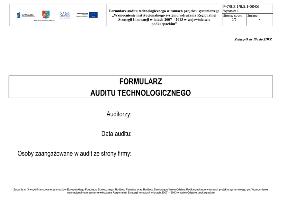 Załącznik nr 19a Formularz Auditu Technologicznego