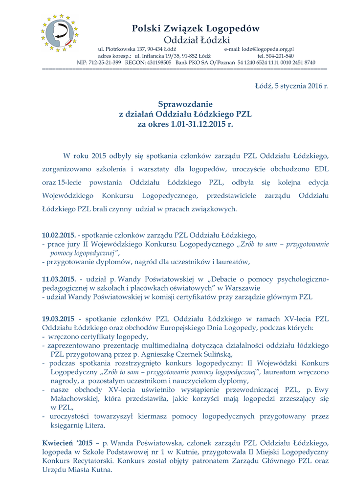 łódzki 2016.01.03. - Polski Związek Logopedów