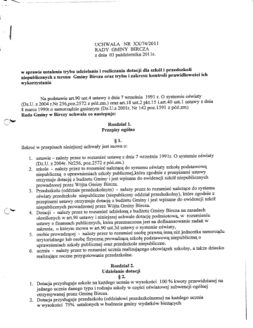 TJchwałareguĘe Ęb udzielani airaz]iczałia dotacji d\a srkóŁiprzedsrkoli niepublicznych