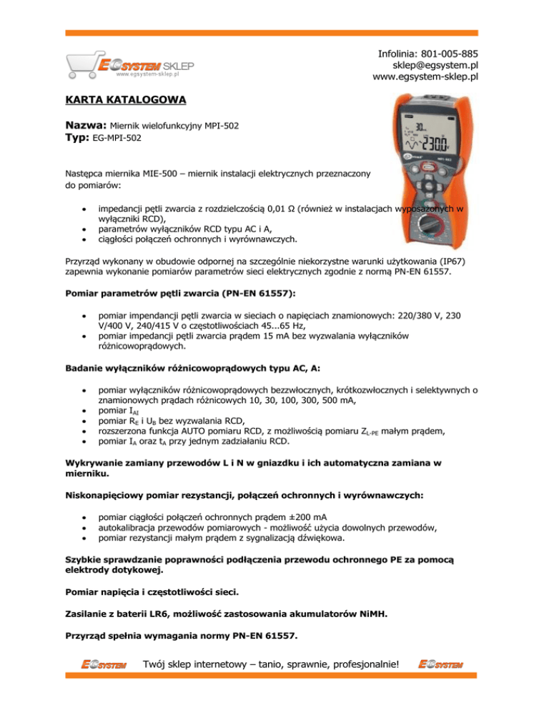 karta katalogowa - EG System sklep