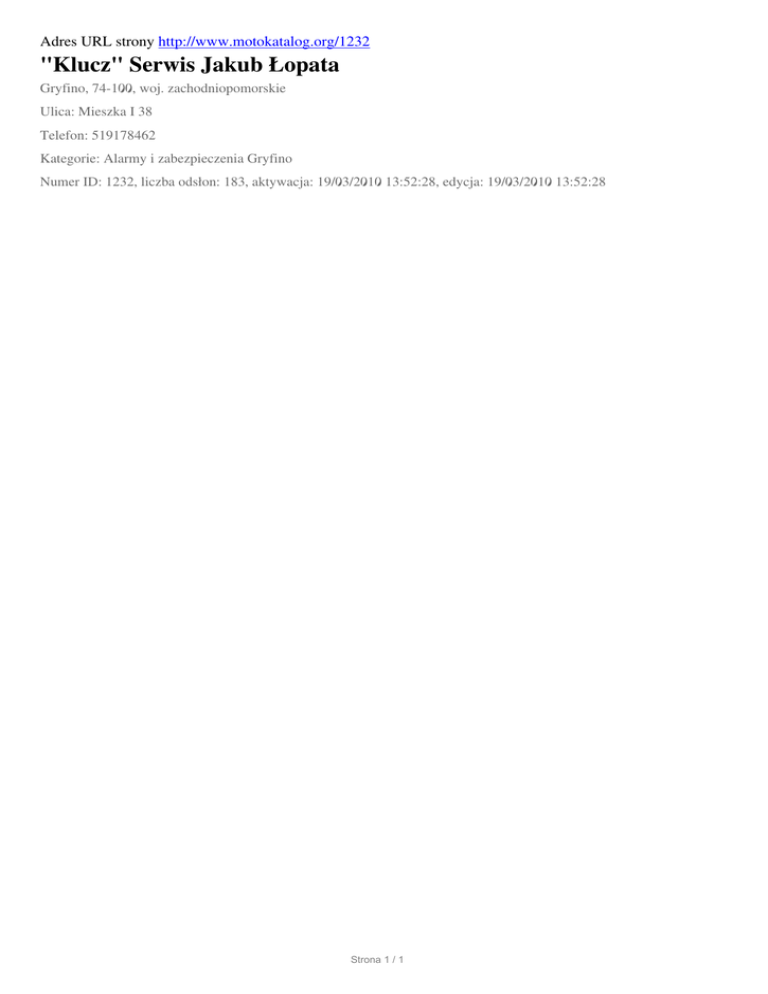 "Klucz" Serwis Jakub Lopata, Gryfino, Mieszka I 38