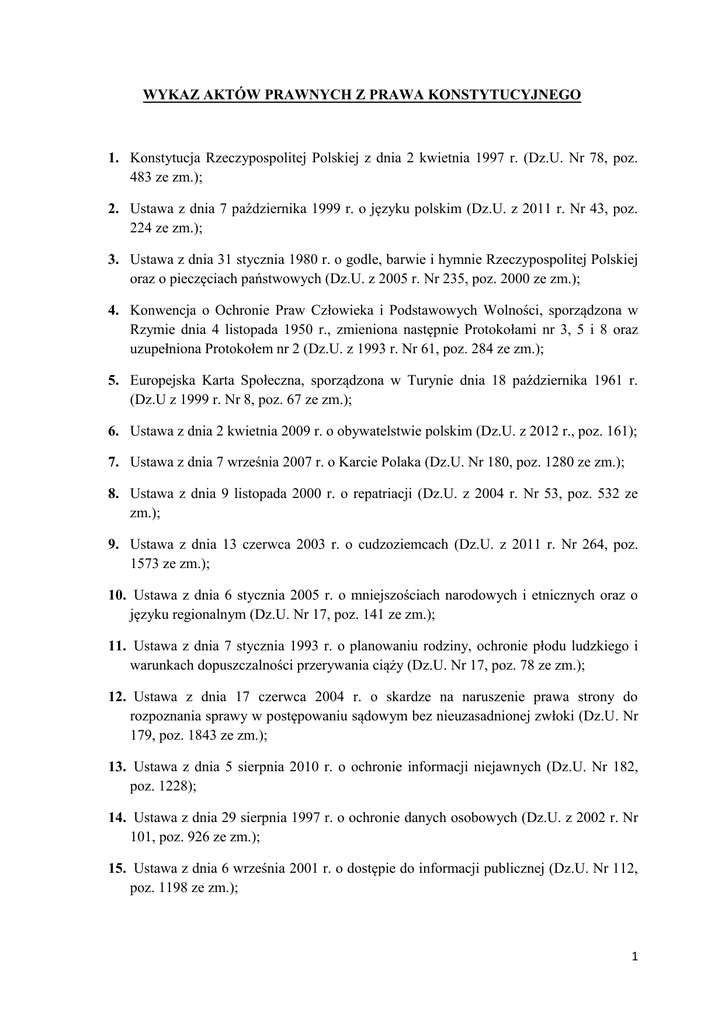 WYKAZ AKTÓW PRAWNYCH Z PRAWA KONSTYTUCYJNEGO 1