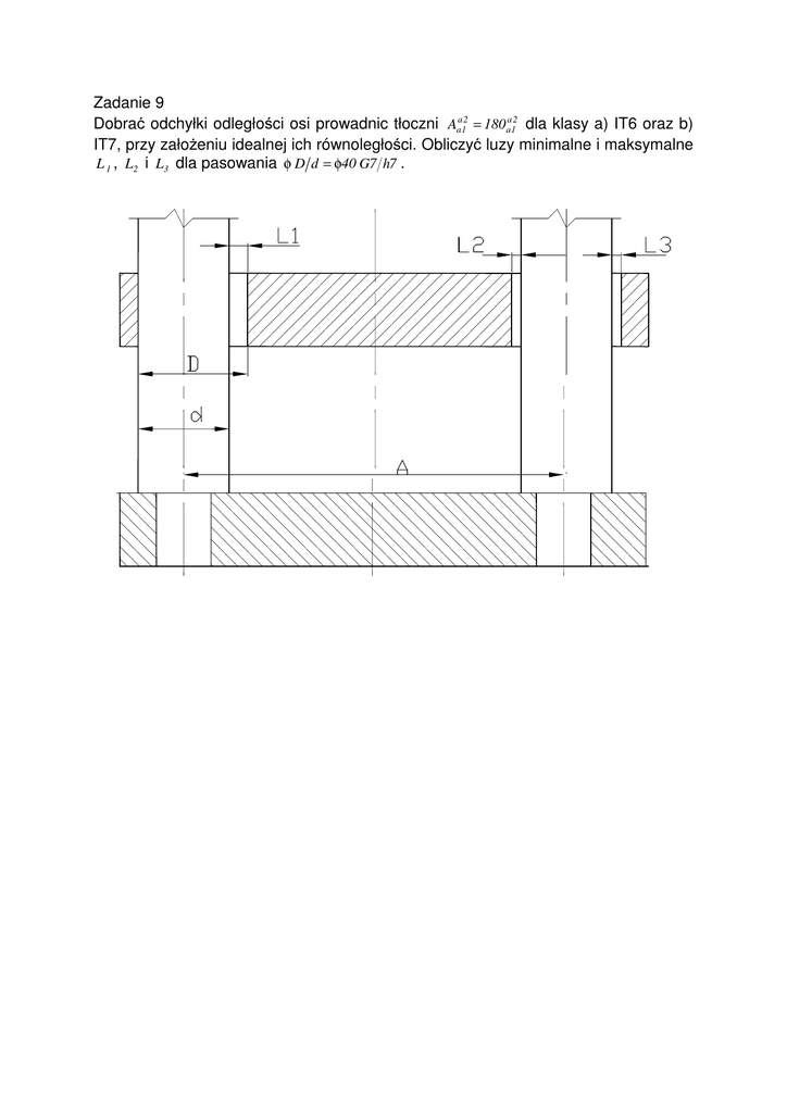 Zadanie 9 Dobrać odchyłki odległości osi prowadnic tłoczni dla