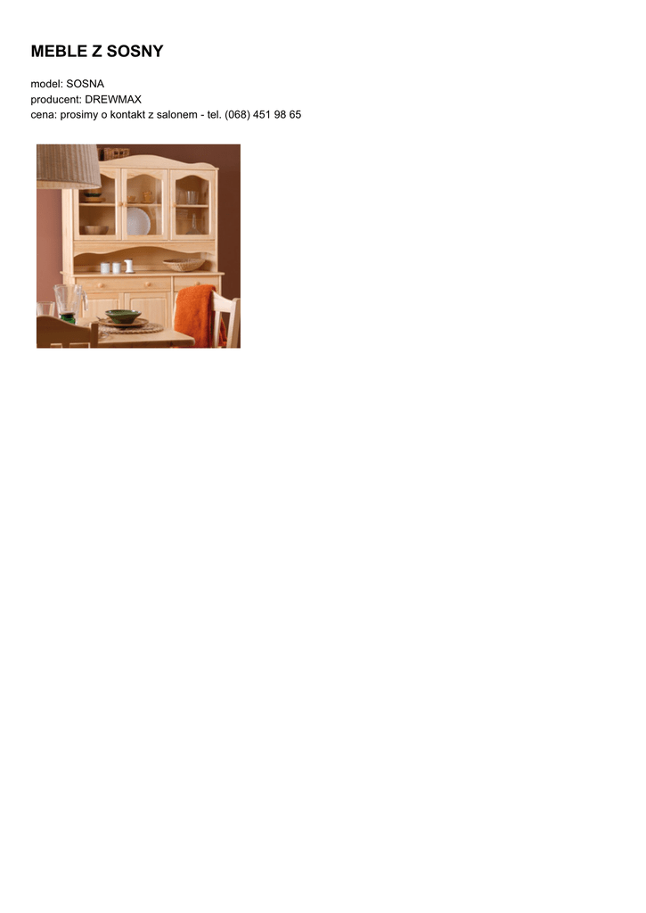 MEBLE Z SOSNY model: SOSNA producent: DREWMAX cena: prosimy o kontakt z salonem - tel. (068) 451 98 65