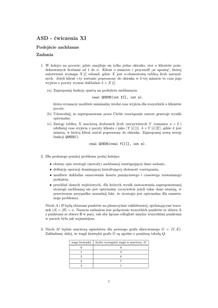 strategii zachłannej nie jest optymalny (oczywiście jeżeli takie dane istnieją, w