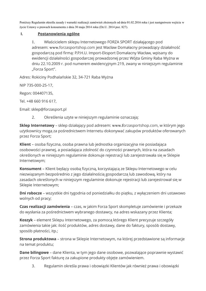 regulamin pdf - Forza Sport Shop