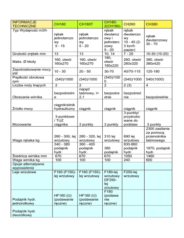 INFORMACJE TECHNICZNE CH160 CH160T CH180