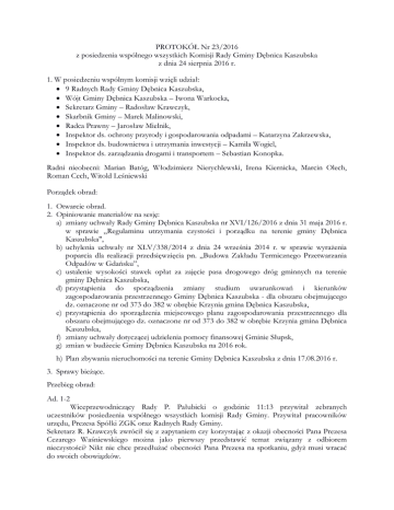 PROTOKÓŁ Nr 23/2016 z posiedzenia wspólnego wszystkich