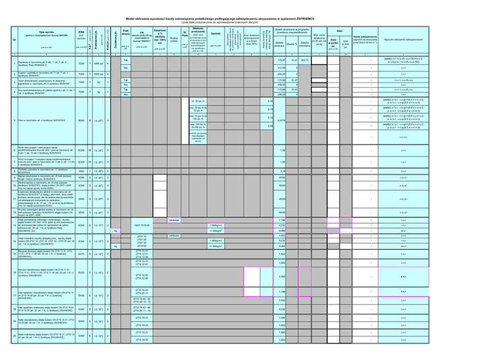 Model obliczania wysokości kwoty zobowiązania podatkowego podlegającego zabezpieczeniu akcyzowemu w systemach ZEFIR/EMCS