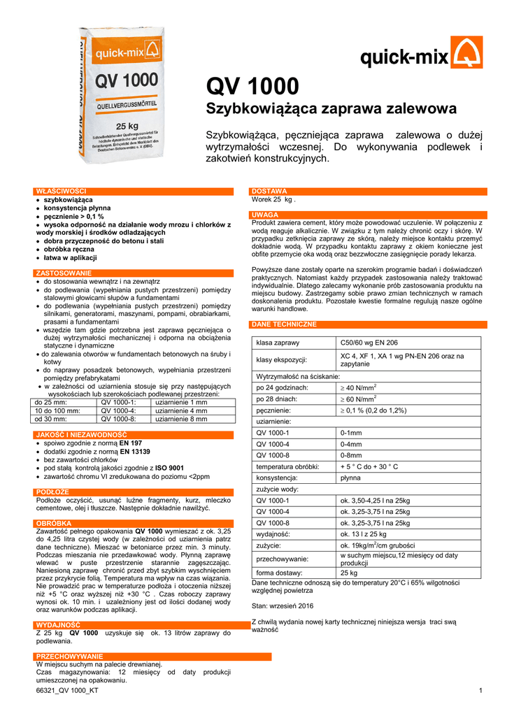 Szybkowiążąca zaprawa zalewowa QV 1000 Karta - quick-mix