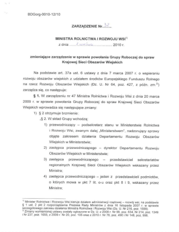 Zarządzenie Nr 32 Ministra Rolnictwa i Rozwoju Wsi z dnia