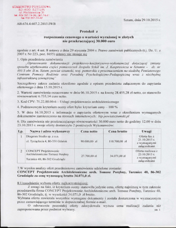 O odrzuceniu pozostalej oferty zdecydowala Wlsza cena realizacji zadania ni2