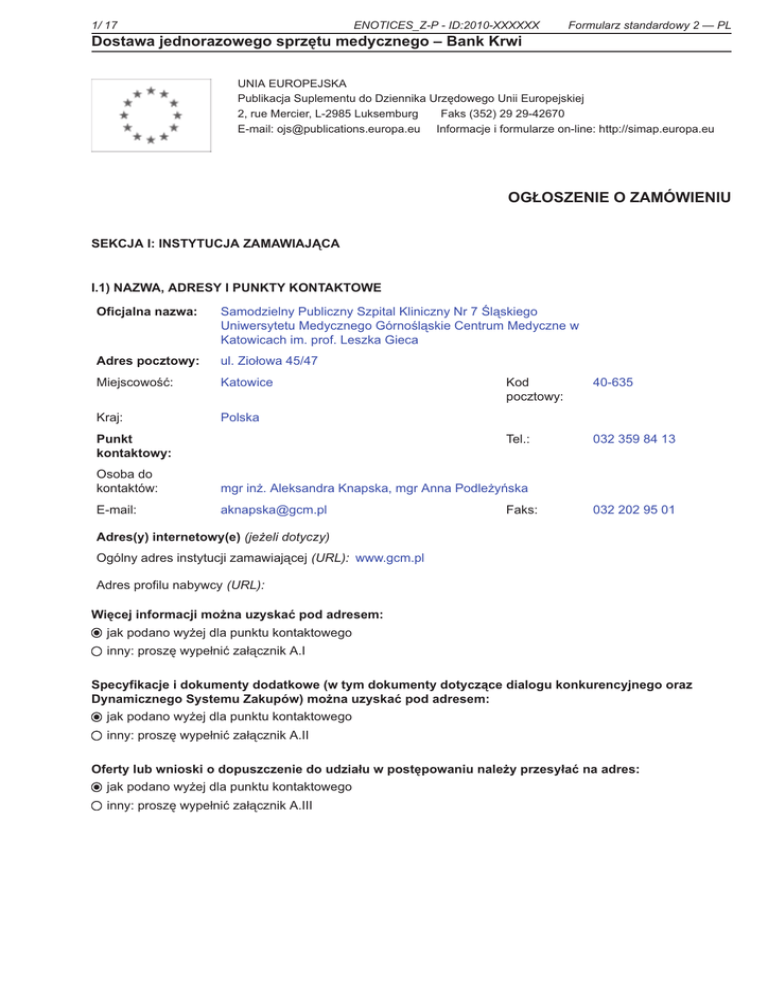 Dostawa jednorazowego sprzętu medycznego = Bank Krwi