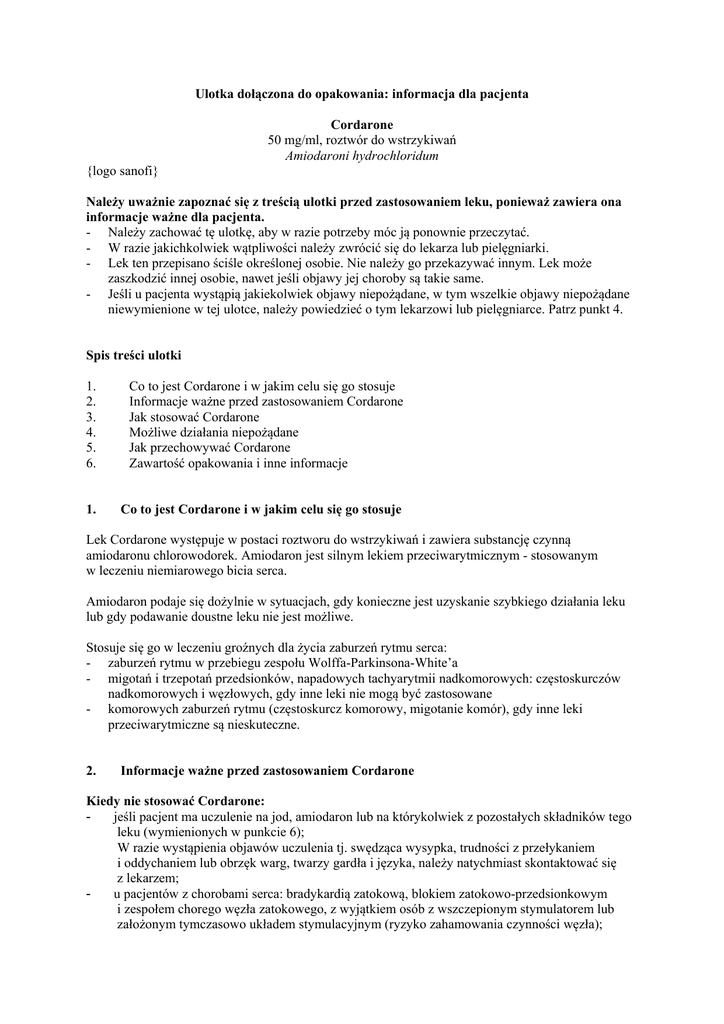Informacje ważne przed zastosowaniem Cordarone