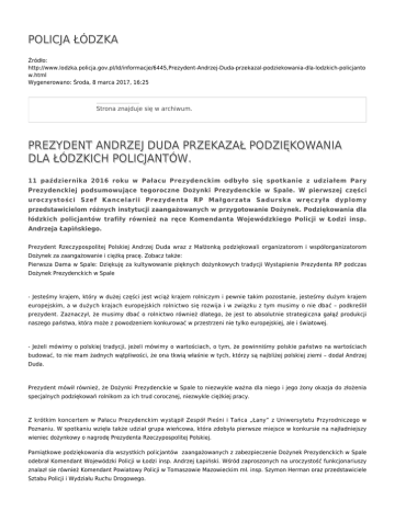 POLICJA ŁÓDZKA PREZYDENT ANDRZEJ DUDA PRZEKAZAŁ