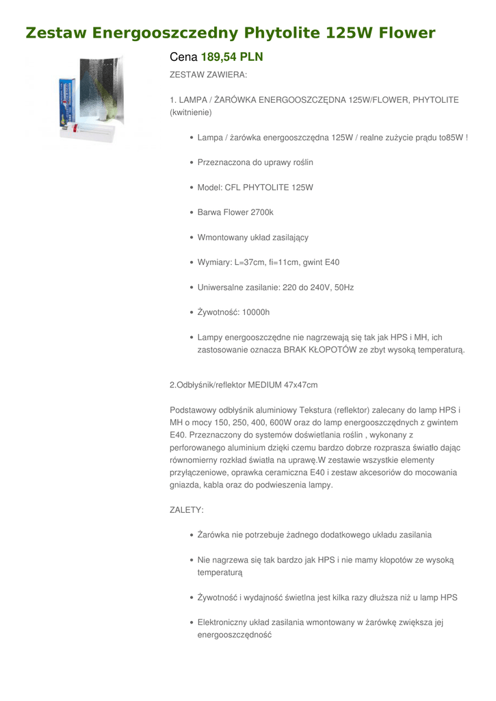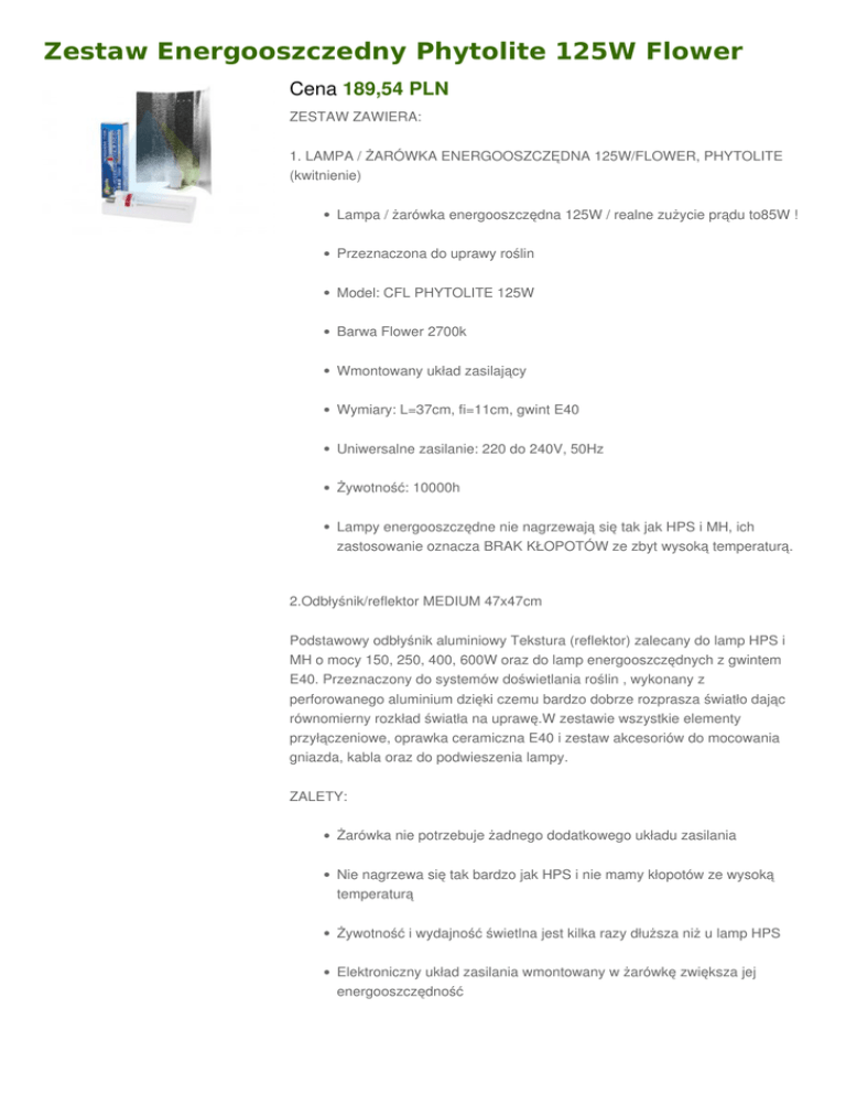 Zestaw Energooszczedny Phytolite 125W Flower