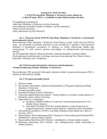 Protokół Nr XXXVII /2013 z XXXVII Sesji Rady Miejskiej w Strykowie