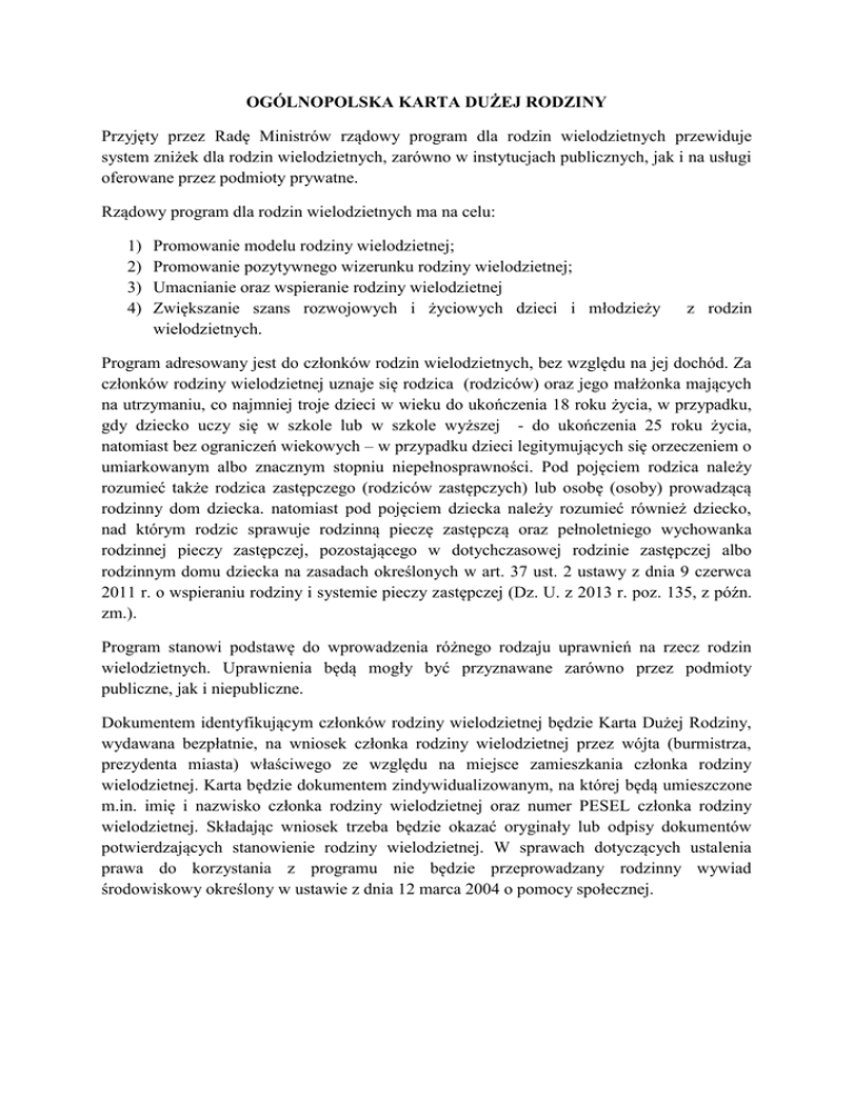OGÓLNOPOLSKA KARTA DUŻEJ RODZINY Przyjęty przez Radę